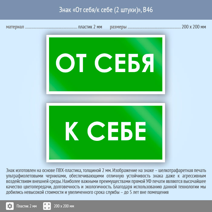 Знак «От себя/к себе», B46 (2 штуки, пластик, 200х100 мм) в Пушкино купить