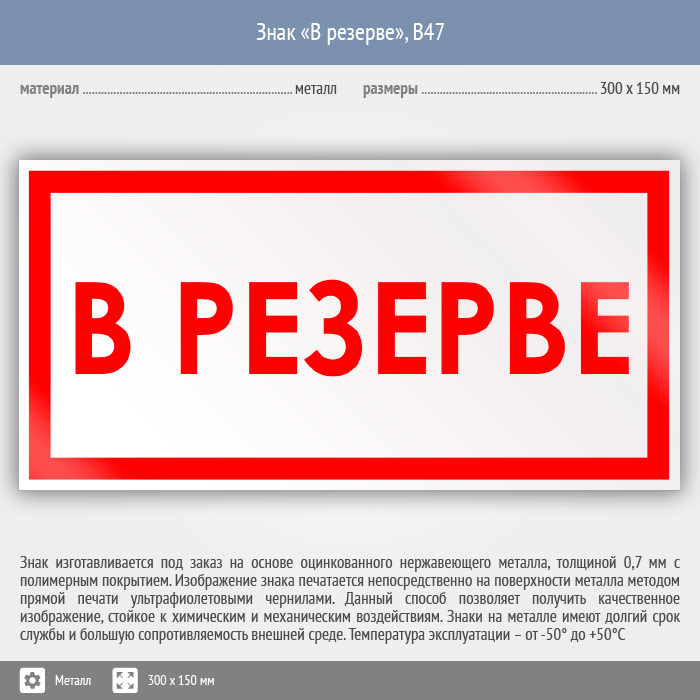 Знак «В резерве», B47 (металл, 300х150 мм) в Пушкино купить