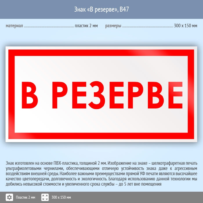 Знак «В резерве», B47 (пластик, 300х150 мм) в Пушкино купить
