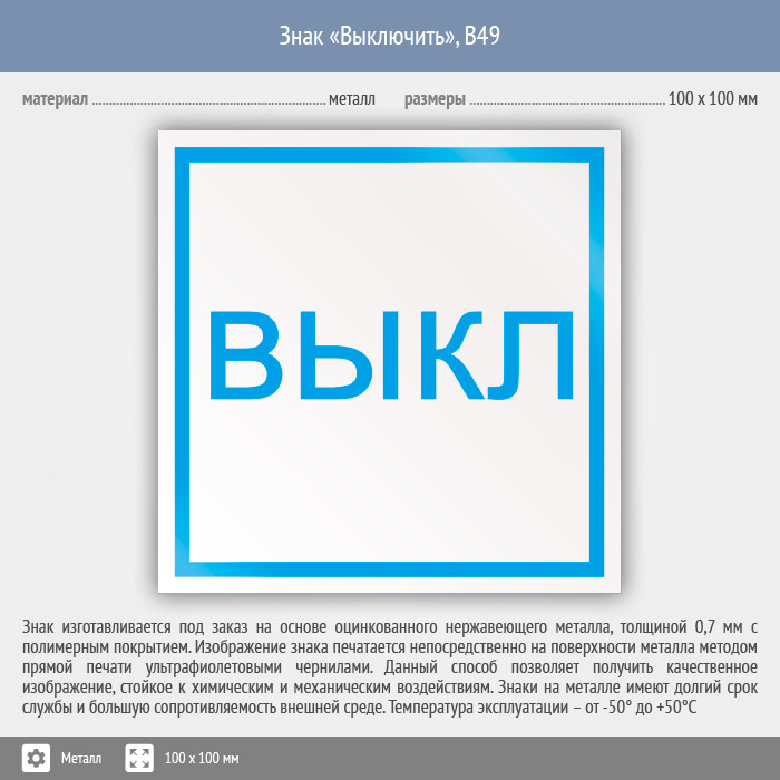 Знак «Выключить», B49 (металл, 100х100 мм) в Пушкино купить