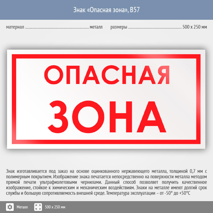 Знак «Опасная зона», B57 (металл, 500х250 мм) в Пушкино купить