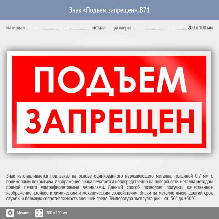 Знак «Подъем запрещен», B71 (металл, 200х100 мм) в Пушкино купить