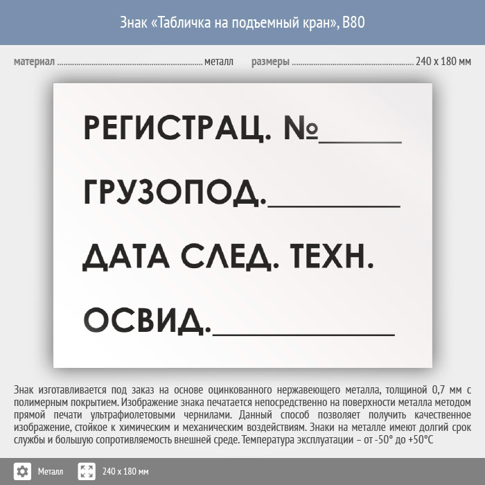 Знак «Табличка на подъемный кран», B80 (металл, 240х180 мм) в Пушкино купить