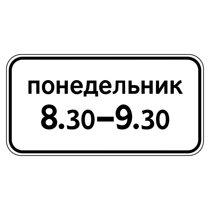 Дорожный знак 8.5.7 «Время действия» (металл 0,8 мм, I типоразмер: 300х600 мм, С/О пленка: тип А инженерная) в Пушкино купить