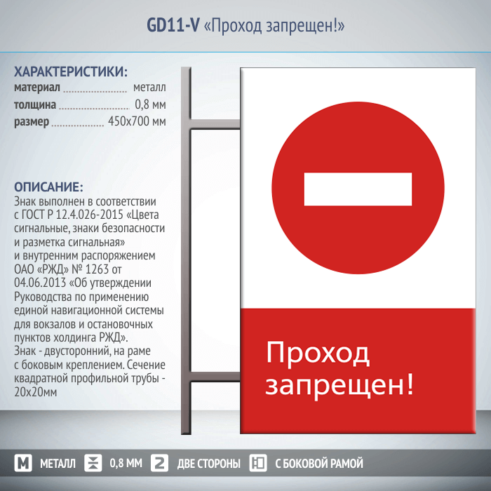 Знак «Проход запрещен!», GD11-V (двусторонний вертикальный, 450х700 мм, металл, на раме с боковым креплением) в Пушкино купить