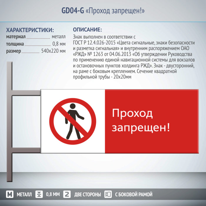 Знак «Проход запрещен!», GD04-G (двусторонний горизонтальный, 540х220 мм, металл, на раме с боковым креплением) в Пушкино купить