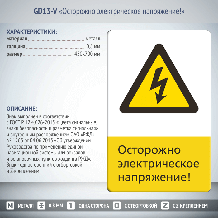 Знак «Осторожно электрическое напряжение!», GD13-V (односторонний вертикальный, 450х700 мм, металл, с отбортовкой и Z-креплением) в Пушкино купить