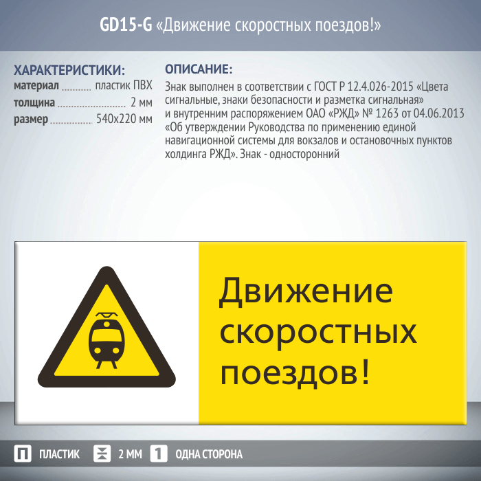 Знак «Движение скоростных поездов!», GD15-G (односторонний горизонтальный, 540х220 мм, пластик 2 мм) в Пушкино купить