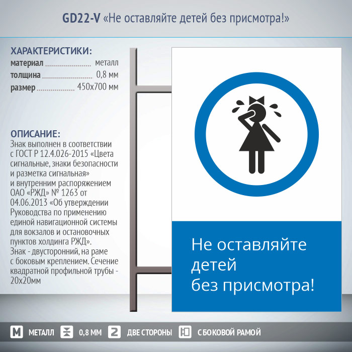 Знак «Не оставляйте детей без присмотра!», GD22-V (двусторонний вертикальный, 450х700 мм, металл, на раме с боковым креплением) в Пушкино купить