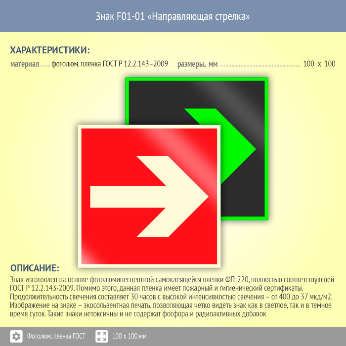 Знак F01-01 «Направляющая стрелка» (фотолюминесцентная пленка ГОСТ 34428-2018, 100х100 мм) в Пушкино купить
