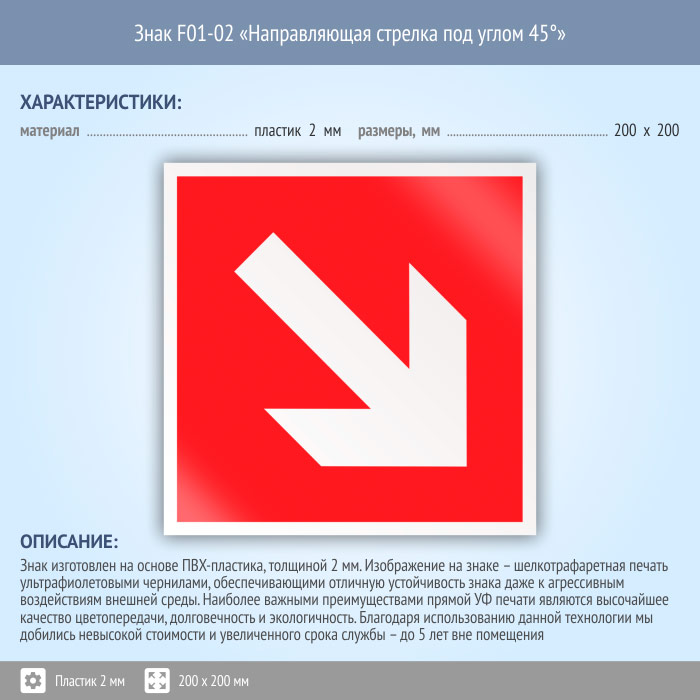 Знак F01-02 «Направляющая стрелка под углом 45°» (пластик, 200х200 мм) в Пушкино купить