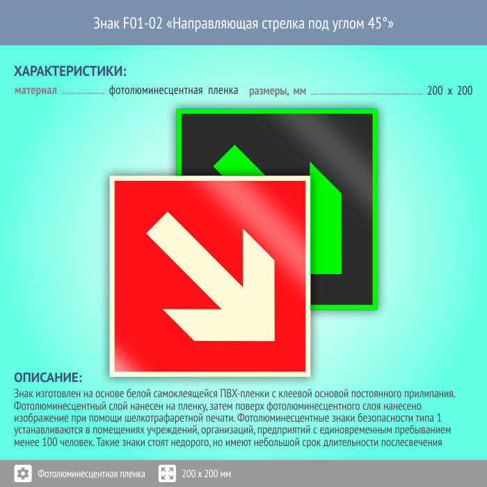 Знак F01-02 «Направляющая стрелка под углом 45°» (фотолюминесцентная пленка, 200х200 мм) в Пушкино купить