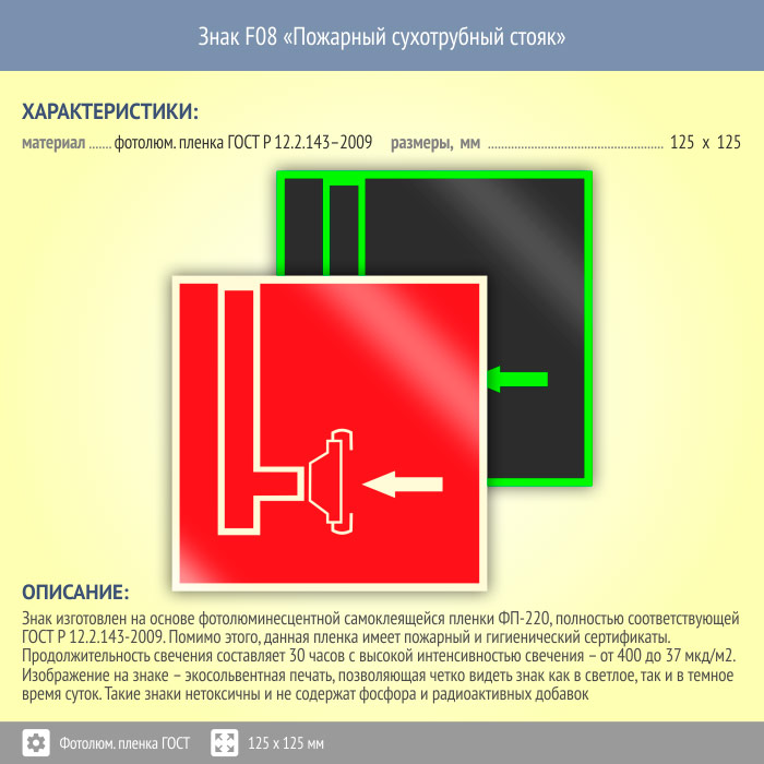 Знак F08 «Пожарный сухотрубный стояк» (фотолюминесцентная пленка ГОСТ 34428-2018, 125х125 мм) в Пушкино купить