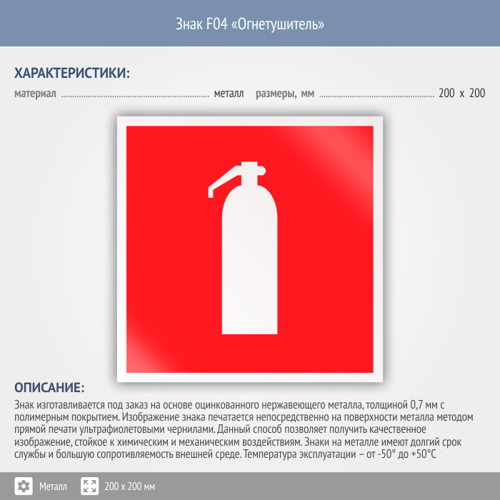 Знак F04 «Огнетушитель» (металл, 200х200 мм) в Пушкино купить