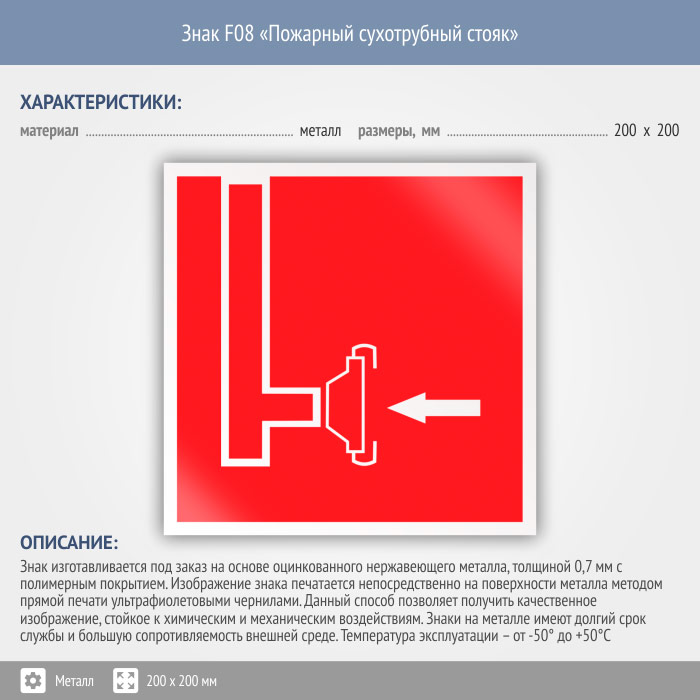 Знак F08 «Пожарный сухотрубный стояк» (металл, 200х200 мм) в Пушкино купить