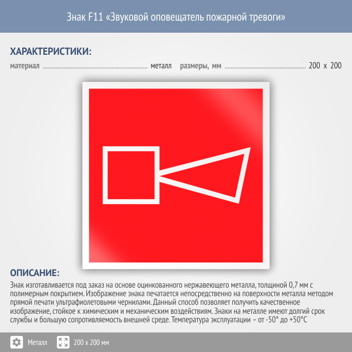 Знак F11 «Звуковой оповещатель пожарной тревоги» (металл, 200х200 мм) в Пушкино купить